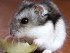 El hámster ruso (Phodopus sungorus) es originario de Kazajistán y el suroeste de Siberia. Es en la actualidad el hámster enano con mayor difusión debido a su buena reputación, por su gran docilidad. Son pequeños (de 7 a 10 cm) y viven entre 1,5 y 2,5 años. Existen varios colores; entre ellos el nominal (gris con raya dorsal más oscura), argente, perla, zafiro, etc. Aceptan mejor que el hámster dorado la convivencia con los de su misma especie, y más aún si fueron criados juntos desde que nacieron; igualmente nunca hay que confiarse demasiado.